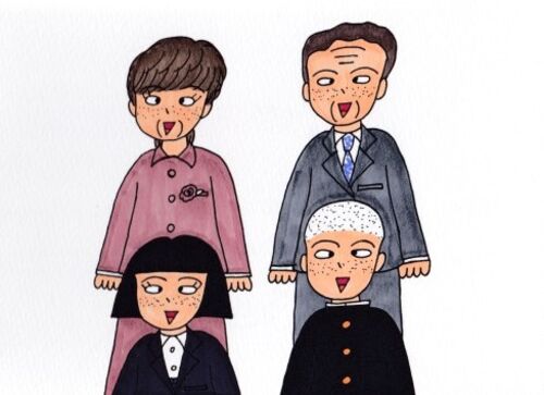 こんにちは。明太(高2)です。 今日はぼくたち家族を紹介します。 こちら! 前列右からぼく・明太、妹の小町(中3)、後列右からお父さんの繁雄(50歳・メーカー勤務)、お母さんのつゆ子(48歳・主婦)です。 ぼくたち家族は秋田に住んでいます。普通の家…